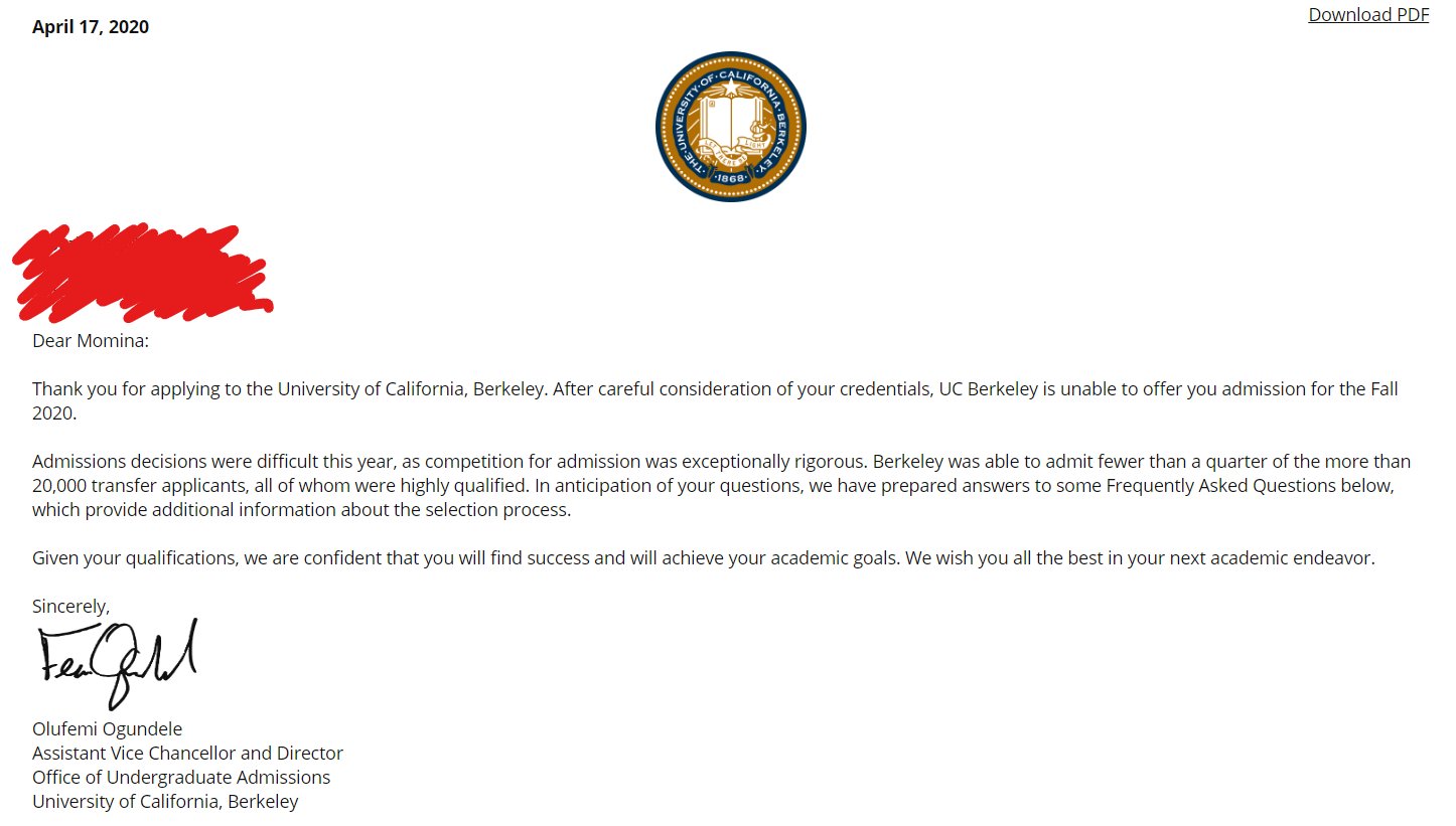 Momo On X My First Rejection Uc Berkeley Alas Https T Co Clzhogmtzm X